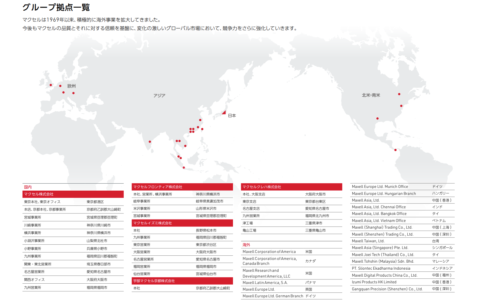 マクセルグループ 所在地マップ